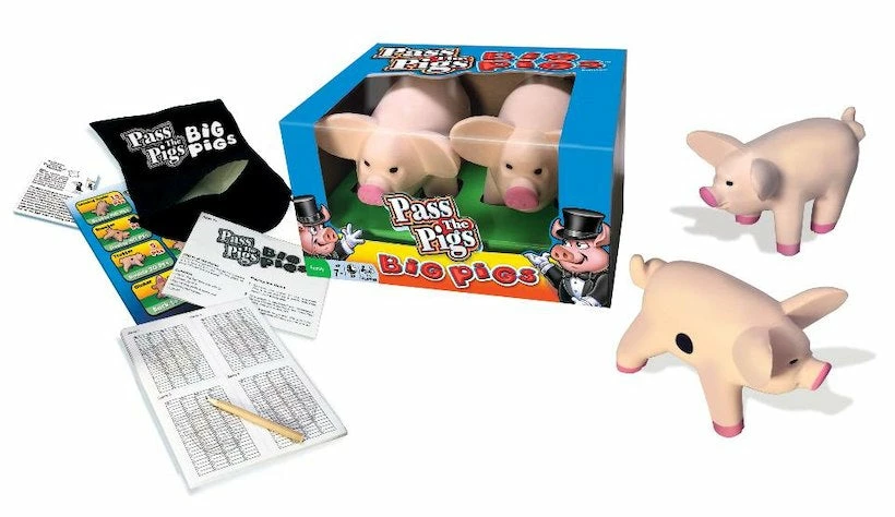 Big Pigs are great for indoor and outdoor play! These fabulous swines can hit all the pig poses that their little pig dice cousins do. Pack the pigs, pencil and over sized score pad in the handy drawstring Pig Pouch and you’re ready to go! Great for indoor or outdoor play All Family Fun