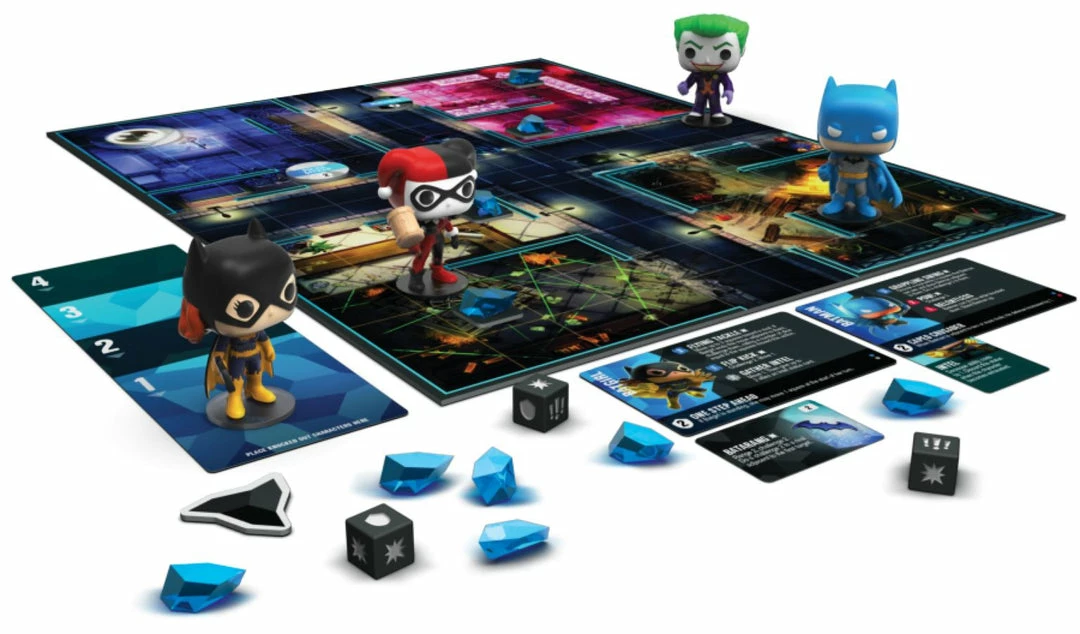 2 – 4 players Ages 10+ May be combined with other Funkoverse games to mix characters and add more players. Comes with 1 Batman, 1 Batgirl, 1 Joker and 1 Harley Quinn 3″ Pop! Vinyl