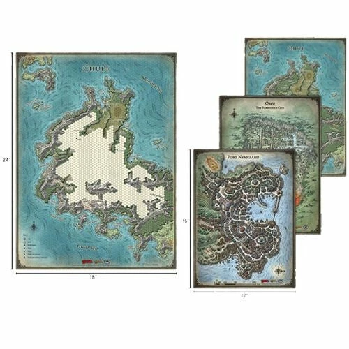 Gale Force Nine’s official Dungeons & Dragons Tomb of Annihilation Map Set contains high-quality single-sided vinyl surfaces that are ideal for tracking the progress of your adventures during the campaign! These maps lay flat for ease of play and are sold in sturdy polycarbonate tubes for storage and transport. The maps may be marked with wet-erase markers to temporarily record the paths your heroes travel, make notes about encounters and locations, or modify the landscape to suit your own campaign, they also look great on the wall of your game room! The Chult player map measures 24″ x 18″ and the Port, City, and Chult DM’s maps measure 16″ x 12″. All of GF9’s Maps are based on artwork provided by Wizards of the Coast. This campaign map set details the lands of Chult, the setting for Dungeons & Dragons campaigns in the Tomb of Annihilation adventure. Packed with details, these maps are a great way to chart your adventures across this dread and adventure-filled jungle.