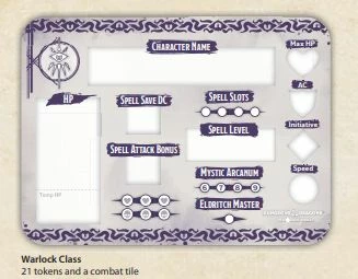 Each token set includes a combat tile and 20 regular tokens with 1 large inspired token. Some classes have additional tokens dedicated for that class which is shown above.