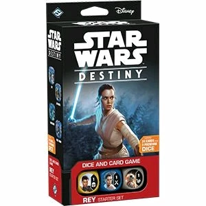 Enter a world of epic, saga-spanning, “what if” battles with the Rey Starter Set for Star Wars: Destiny! With an array of characters that spans the saga from The Phantom Menace to The Force Awakens, Star Wars: Destiny gives you the freedom to play out any battle you can imagine. Innovative gameplay blends dice and cards as you strategize exactly how to defeat your opponent’s characters. Meanwhile, the game’s collectible model invites you to enter the game at whatever pace you choose, tweaking your decks with the addition of new cards and dice from booster packs. The Rey Starter Set is an excellent starting point for you to enter Star Wars: Destiny. Here, you’ll find a fixed set of twenty-four heroic cards with nine premium dice, alongside tokens and a rule sheet – everything you need for one player to take command of Rey and Finn while fighting for the light side across the Star Wars galaxy.