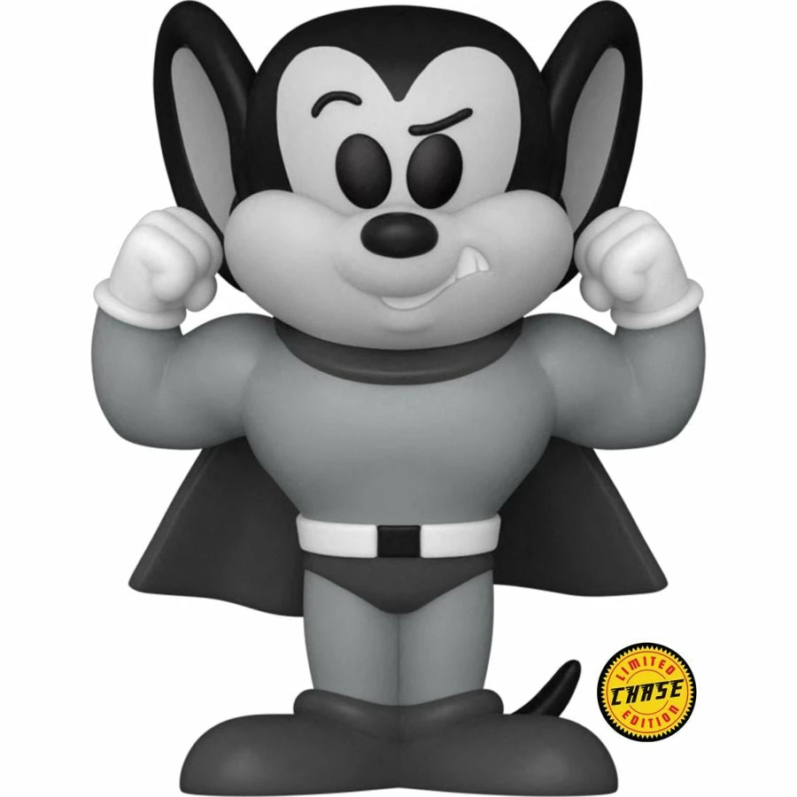Mighty Mouse the superhero mouse From the animated series Mighty Mouse Made of plastic/vinyl Approximately 3.75″ tall Soda can packaging May include chase variant, average ratio 1 in 6 units as advised by the manufacturer. We can give no warranty as to the accuracy or certainty of these ratios. Chase Variant is black & white