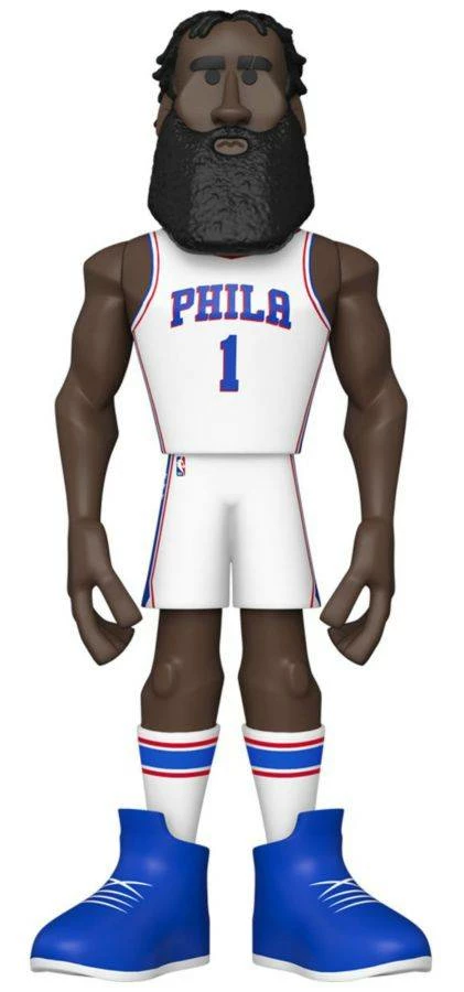 Score a slam dunk for your National Basketball Association collection variant of James Harden in his blue 76ers away game uniform. Head, arms, and torso rotate. Vinyl figure is 12-inches tall.