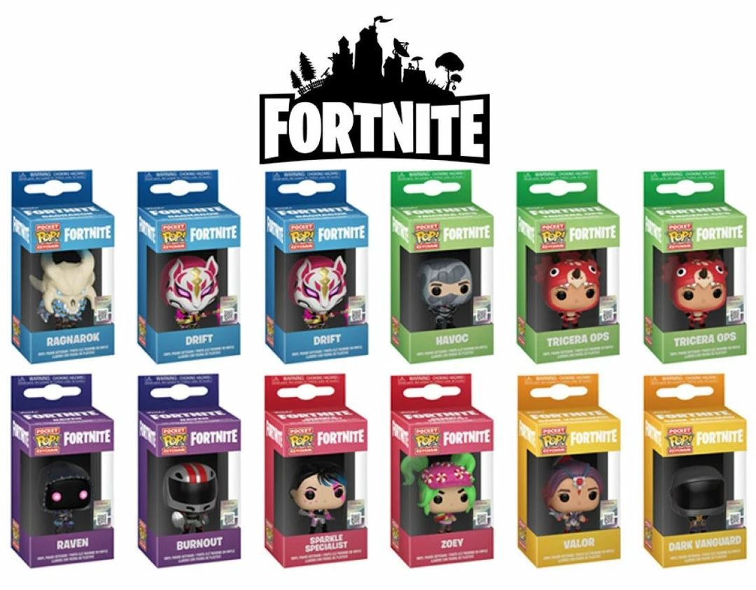 Features: 1 x FUN35708 Fortnite – Dark Vanguard Pop! Keychain 2 x FUN35716 Fortnite – Tricera Ops Pop! Keychain 1 x FUN35718 Fortnite – Raven Pop! Keychain 1 x FUN35719 Fortnite – Sparkle Specialist Pop! Keychain 1 x FUN36970 Fortnite – Burnout Pop! Keychain 1 x FUN36972 Fortnite – Havoc Pop! Keychain 1 x FUN36973 Fortnite – Zoey Pop! Keychain 1 x FUN36974 Fortnite – Valor Pop! Keychain 1 x FUN36977 Fortnite – Ragnarok Pop! Keychain 2 x FUN36978 Fortnite – Drift Pop! Keychain