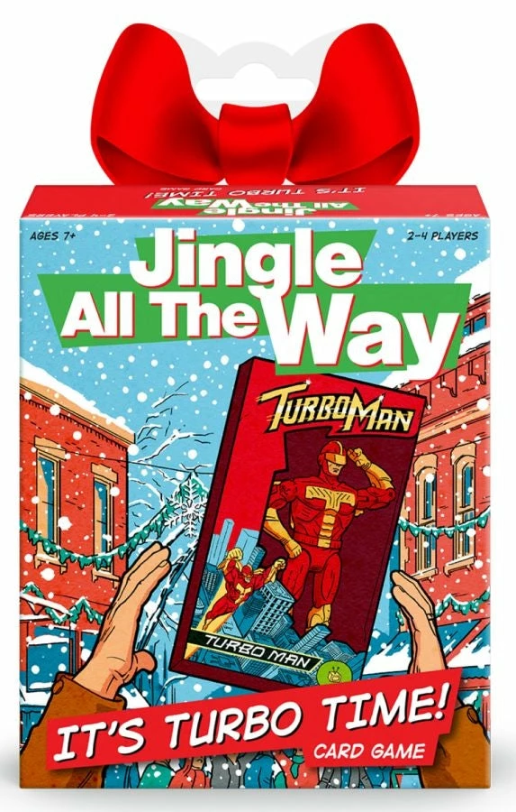 Face off as frantic shoppers in the hunt for the most exclusive toy of the holiday season – Turbo Man! But there’s only one left, so be ready for mischief in this turbo-charged, trick-taking game! Based off the iconic ’90s movie, this game has you peeking at, flipping, shuffling, and swapping tiles to get the best toys. Will you search for toys on the shelf or wait for another player to find the prize before snatching it from their cart? Fill your cart with the best toys to win! Interesting Gameplay Features Includes Live-Action Turbo Man figure. Unique illustrations on every card bring the fan-favorite film to life! With points for each toy and bonus points for sets, there are multiple paths to victory. Exciting card abilities give kids the power to beat their parents! Game Details Family card game Ages 7+ For 2-4 players 20-minute gameplay