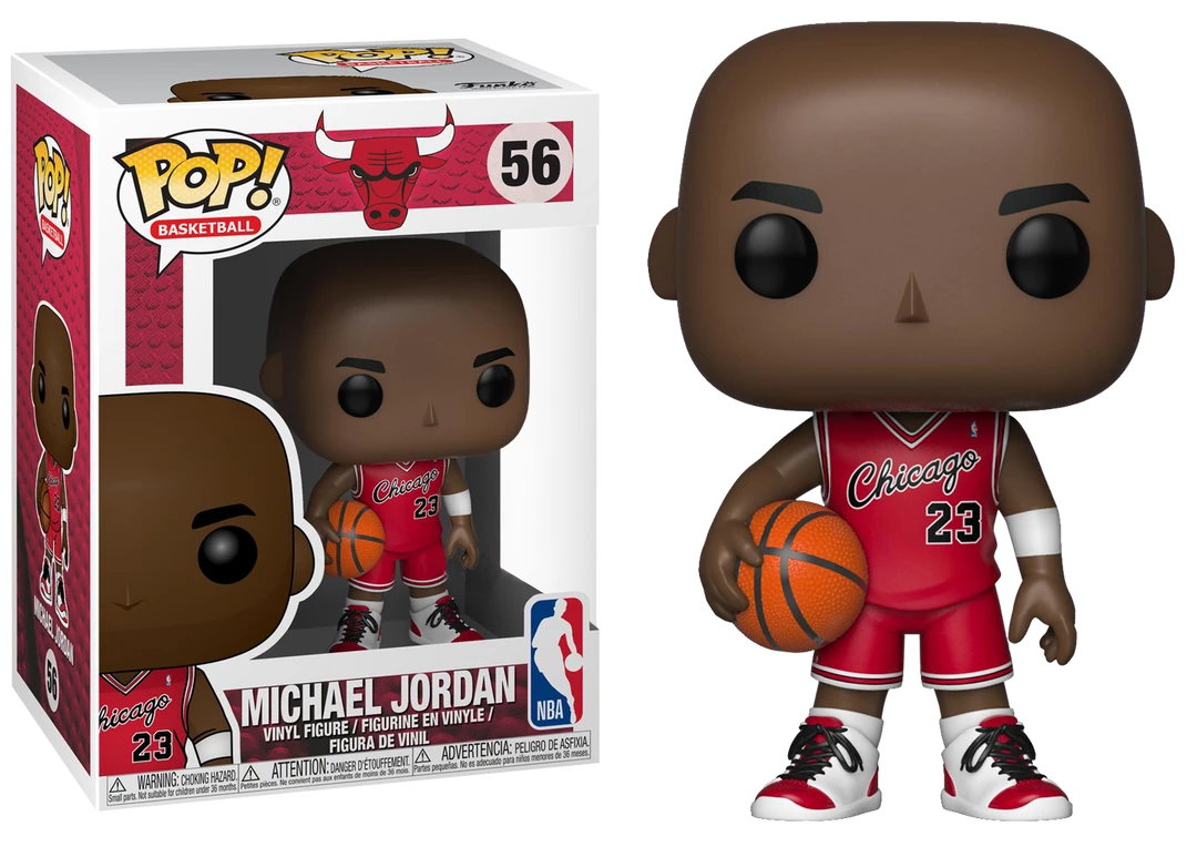 Michael Jordan in red warm ups From NBA Chicago Bulls Made of plastic/vinyl Approximately 3.75″ tall Window box packaging Pop!Basketball