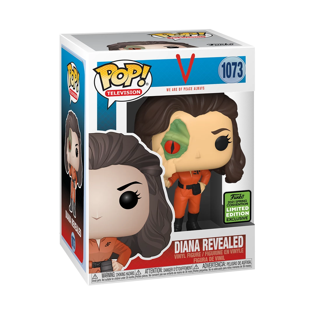 In the world of the television series V, Diana is the second-in-command of the Visitor Earth fleet who murders her superiors and becomes the Supreme Commander. This exclusive Pop Vinyl features the character with her lizard face revealed and is a must for any V collection!