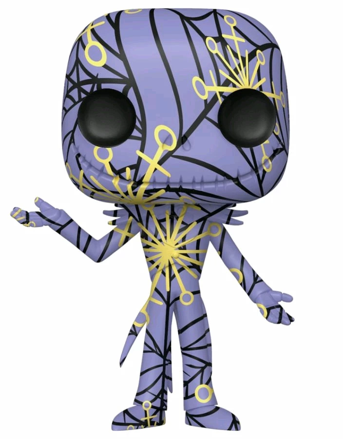 Jack Skellington Artist series (purple & yellow) variant From Tim Burton’s stop-motion movie The Nightmare Before Christmas As voiced by Chris Sarandon Made of plastic/vinyl Approximately 3.75″ tall Window box packaging