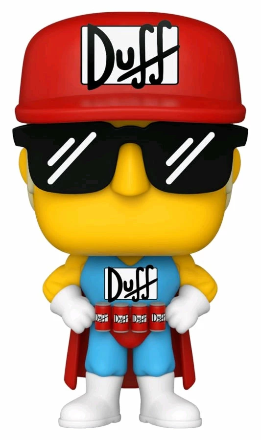 Duffman, the mascot for Duff Beer From the television series The Simpsons As voiced by Hank Azaria Made of plastic/vinyl Approximately 3.75″ tall Window box packaging Pop!Television