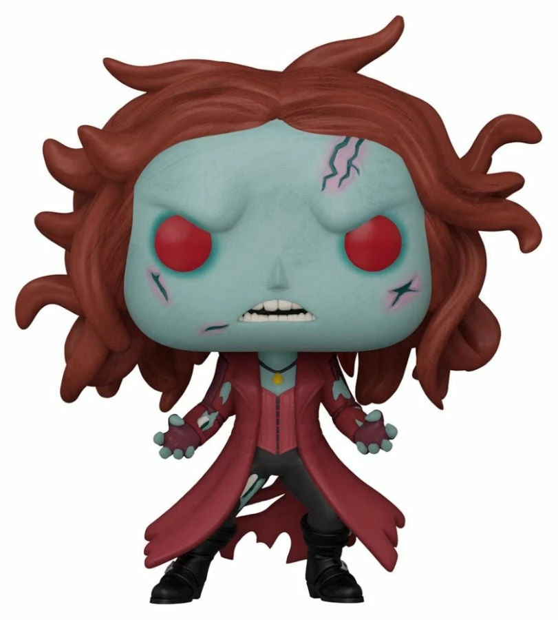 Zombie Scarlet Witch From the 2021 Disney+ series What If…? Made of plastic/vinyl Approximately 3.75″ tall Window box packaging Pop!Marvel #943