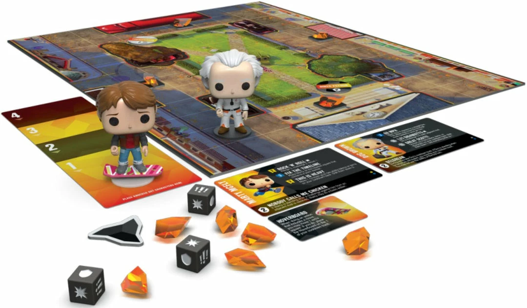 In the Funkoverse Strategy Game, you combine your favorite characters and go head-to-head in four exciting game scenarios. Use your characters’ unique abilities to gain points and achieve victory! Each turn, you select one of your characters and perform two actions. Each character has access to basic actions like moving and challenges as well as several unique abilities that may be performed only by spending ability tokens. Funkoverse uses an innovative “cooldown” system the more powerful the ability, the longer it will take for the ability token to become available again so players have to spend their ability tokens wisely. Each character in Funkoverse is unique, so players are encouraged to try out different combinations of characters and items in order to discover their favorite synergies and powerful strategies for all four game scenarios. Funkoverse Strategy Game: Back to the Future 100 is a standalone game that includes the characters Marty McFly and Doc Brown. This set may be combined with others, giving you the ability to assemble the team you want!