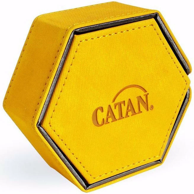 The Hexatower is a premium dice tower in the famous hexagonal shape of CATAN. It has an innovative Nexofyber surface and a soft, silver fabric inner lining. The premium materials ensure a comfortable touch-and-feel experience and dice-rolling is enhanced by a pleasant sound. The surrounding flap, held safely closed by strong magnets, can be removed and clips safely to the side of the Hexatower to create a dice-stopper at the gaming table. Of course, this luxe accessory can also carry your CATAN dice.