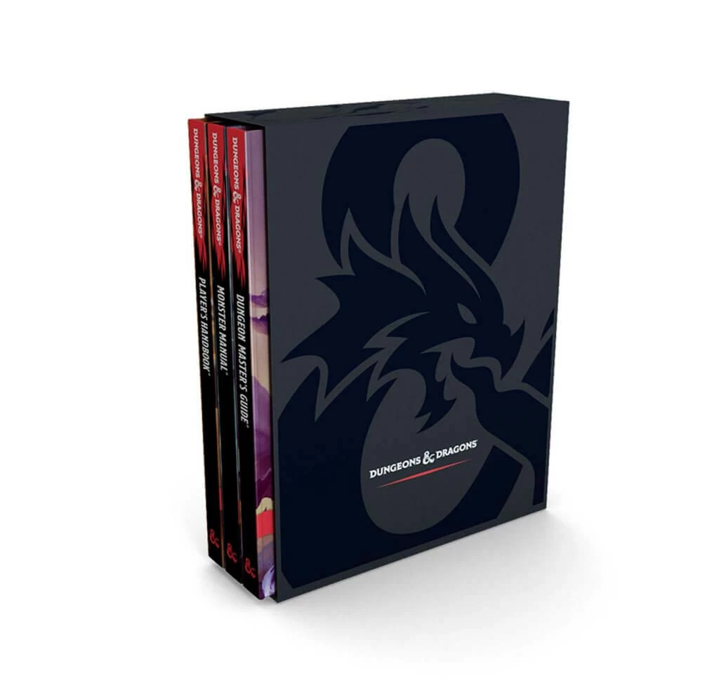The Dungeons & Dragons Core Rulebooks Gift Set includes a copy of all three core rulebooks—the Player’s Handbook, Dungeon Master’s Guide, and Monster Manual, plus a Dungeon Master’s Screen. Everything a gamer needs to create and play adventures in the world’s greatest roleplaying game.