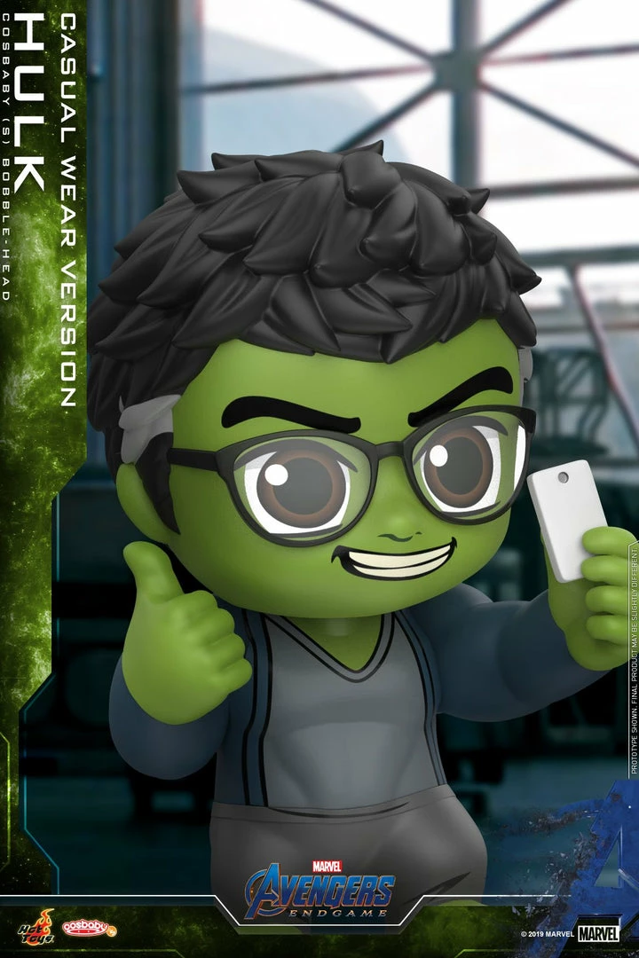 Bobble-Head stands approximately 9 – 12cm tall with bobble-head function. The Hulk, AKA Bruce Banner, ready for selfies From the Marvel movie Avengers 4: Endgame As portrayed by Mark Ruffalo