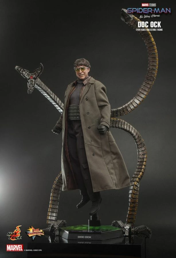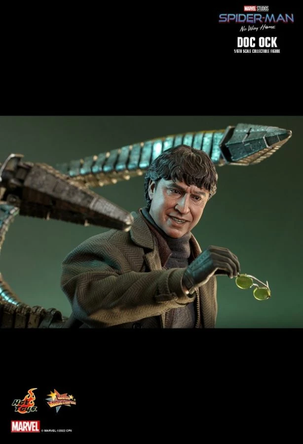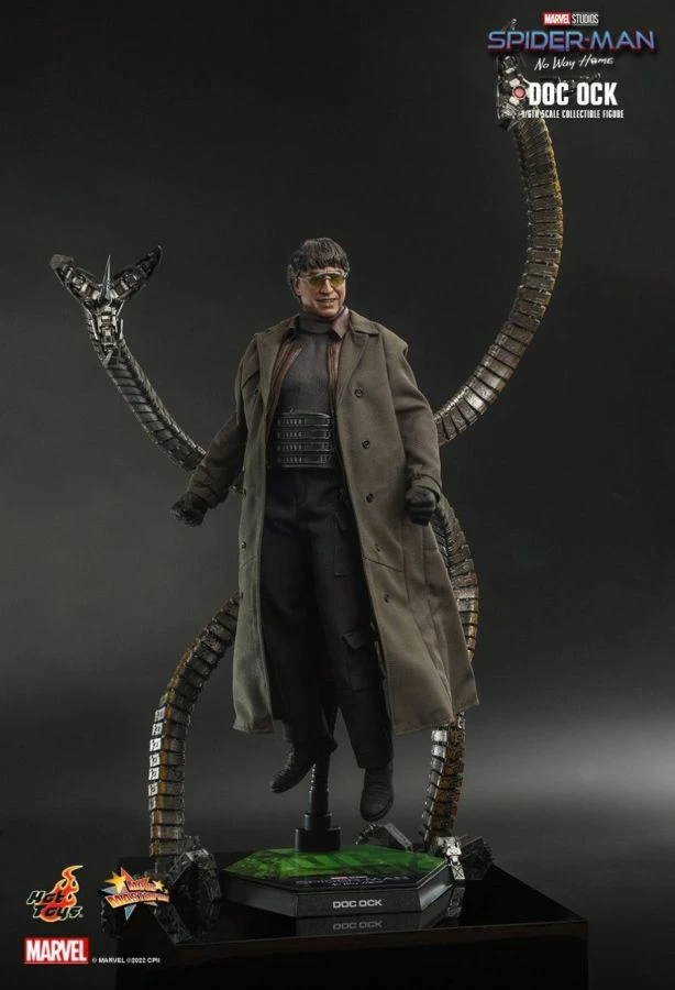 Spider-Man: No Way Home features return of Doctor Octopus despite he sacrificed himself in the early Spider-Man movies. Due to malfunction of the inhibitor chip, Doc Ock has stepped into his villainous persona allowing the arms to take control and fuse themselves to his body. But now he has arrived to this dimension and got cured by Peter Parker! To expand on the Spider-Man: No Way Home, Hot Toys is excited to unveil 1/6th scale Doc Ock collectible figure from Spider-Man: No Way Home collection. Skillfully crafted based on Doc Ock �s appearance in the movie portrayed by Alfred Molina, the figure features a newly developed head sculpt with amazing likeness; perfectly tailored outfit highlighting authentic details on his belt and coat; bendable tentacles extended from his back with articulated claws, capturing his signature weapons and its mechanical design down to the smallest attention; a pair of goggles, a tentacle spear, and a dynamic figure stand. Make sure to add him to your amazing Spider-Man display! The 1/6th scale Doc Ock Collectible Figure special features: – Newly developed head sculpt with authentic and detailed likeness of Alfred Molina as Doc Ock in Spider-Man: No Way Home – Movie-accurate facial features with wrinkles and skin texture – Body with over 30 points of articulation – Approximately 31.5cm tall – Seven (7) pieces of interchangeable gloved hands including: – One (1) pair of fists – One (1) pair of relax hands – One (1) pair of gesture hands – One (1) right hand for holding goggles – Each piece of head sculpt is specially hand-painted Costume: – One (1) dark green colored long coat – One (1) brown colored blazer – One (1) black colored turtle neck shirt – One (1) pair of dark grey colored pants – One (1) pair of black colored socks – One (1) pair of black colored shoes – One (1) metallic silver colored belt Weapons: – Four (4) mechanical tentacles (equipped with bendable wire) with two styles of articulated claws – One (1) tentacle spear (attachable to the upper tentacles) Accessories: – One (1) pair of goggles – Specially designed dynamic figure stand with movie logo and character nameplate