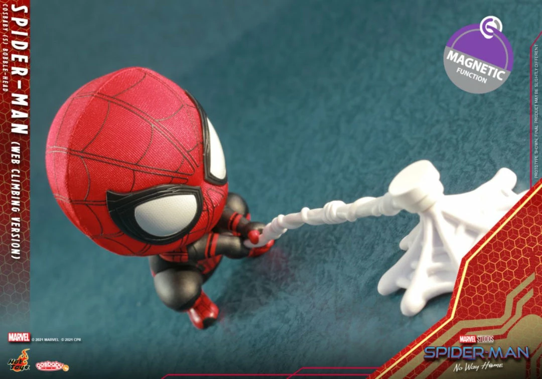 – Cosbaby (S) Bobble-Head measures approximately 8 – 12cm tall – Spider-Man (Web Climbing Version) Cosbaby (S) Bobble-Head is equipped with magnetic function