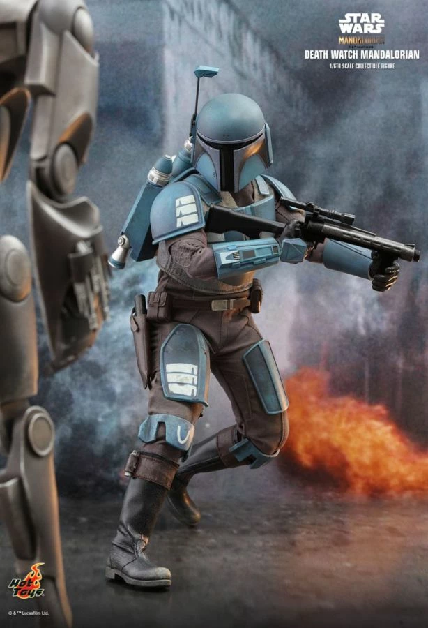 During a Separatist attack on the settlement of Aq Vetina, the young Din Djarin was under attack by super battle droids, but before any harm could come to the boy, a group of Death Watch Mandalorians arrived to take out the droids and rescue Din. With a new season of the highly anticipated The Mandalorian debuting soon, Hot Toys is delighted to expand The Mandalorian collectible series further and officially introducing the new 1/6th scale Death Watch Mandalorian collectible figure today! The highly-accurate collectible figure is specially crafted based on the appearance of the Death Watch Mandalorian who rescued the young Din Djarin in the show. It features highly detailed helmet and armor pieces with weathering effects, skillfully tailored outfit, finely sculpted jetpack with real-like thruster fire accessories, two blasters, and a figure base. Don’t miss out on the opportunity to include the stunning Death Watch Mandalorian 1/6th scale collectible figure from The Mandalorian in your Star Wars collection! “This is the way.” The 1/6th scale Death Watch Mandalorian Collectible Figure specially features: – Authentic and detailed likeness of Death Watch Mandalorian in the live action-series The Mandalorian – Newly developed Death Watch Mandalorian helmet and finely crafted body armor in blue color with rank insignia – Specially applied weathering effects on armor, weapons, and accessories – Approximately 30cm tall – Body with over 30 points of articulations – Six (6) pieces of interchangeable gloved hands including: – One (1) pair of fists – One (1) pair of relaxed hands – One (1) pair of hands for holding weapons Costume: – One (1) blue colored battle damaged chest armor – One (1) dark brown colored under-suit with shoulder armors and thigh guards – One (1) grey colored vest with armors – One (1) pair of blue colored gauntlets – One (1) brown colored leather-like utility belt with pistol holster – One (1) pair of blue colored knee armors – One (1) pair of leather-like black colored boots with weathering effect – One (1) interchangeable blue colored left thigh guard Weapons: – One (1) blaster rifle – One (1) blaster pistol Accessories: – One (1) magnetically attachable blue jetpack with two (2) real-like thruster fire accessories – Specially designed dynamic figure stand with Star Wars logo and character nameplate Artists: – Figure Painted by Lok Ho – Figure Art Directed by JC. Hong