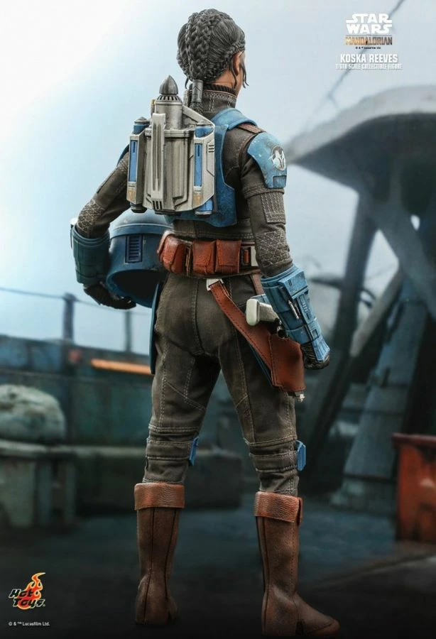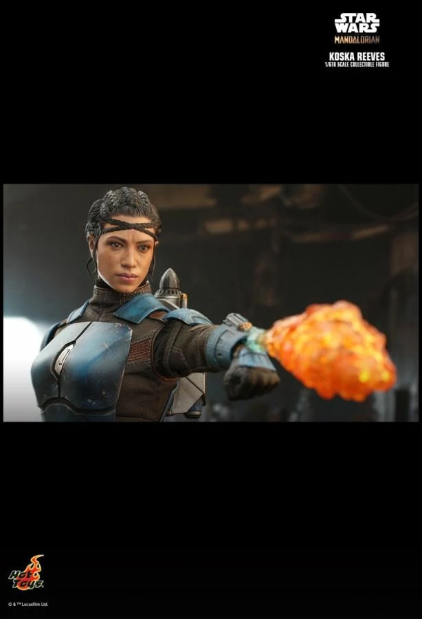 As a member of the Nite Owls, Koska Reeves is a fierce Mandalorian who fights alongside the legendary Bo-Katan Kryze in her pursuit to reclaim Mandalore. During their journey, the Nite Owls cross paths with Din Djarin and assist him in saving the mysterious alien foundling Grogu. In continuation of expanding the widely popular The Mandalorian collectible series, Hot Toys is excited to officially introduce the new 1/6th scale Koska Reeves collectible figure! The Koska Reeves collectible figure features newly developed head sculpt with great likeness and detailed hair sculpture, Mandalorian helmet and armor with weathering effects, skillfully tailored under-suit, a jetpack with booster fire effects, a blaster rifle, a blaster pistol, a wired grappling hook, a flamethrower effect, a themed display stand and backdrop! Keep this loyal and fierce Mandalorian close in your Star Wars collection! The 1/6th scale Koska Reeves Collectible Figure specially features: – Authentic and detailed likeness of Mercedes Varnado as Koska Reeves in Star Wars: The Mandalorian series – One (1) newly crafted Koska Reeves Mandalorian helmet with articulated rangefinder – One (1) newly developed head sculpt with highly-accurate facial expression and skin texture – Dark brown colored braided hair sculpture – Specially applied distress effects on armor, weapons, and accessories – Approximately 28cm tall – Body with over 26 points of articulations – Seven (7) pieces of interchangeable gloved hands including: – One (1) pair of fists – One (1) pair of relaxed hands – One (1) pair of hands for holding pistol – One (1) gesture hand – Each piece of head sculpt is specially hand-painted Costume: – One (1) Koska Reeves � Mandalorian armor vest with distressed effects and jetpack (non-detechable) – One (1) pair of blue gauntlets with weathering effects – One (1) grey green colored long sleeves shirt – One (1) brown belt with pouches and pistol holsters – One (1) pair of blue knee guard with weathering effects – One (1) pair of grey green pants – One (1) pair of brown colored boots Weapons: – One (1) rifle with strip – One (1) blaster pistol – One (1) wired grappling hook Accessories: – Two (2) booster fire effect accessories (attachable to jetpack) – One (1) flamethrower effect accessory (attachable to gauntlet) – Specially designed dynamic figure stand with character nameplate and backdrop