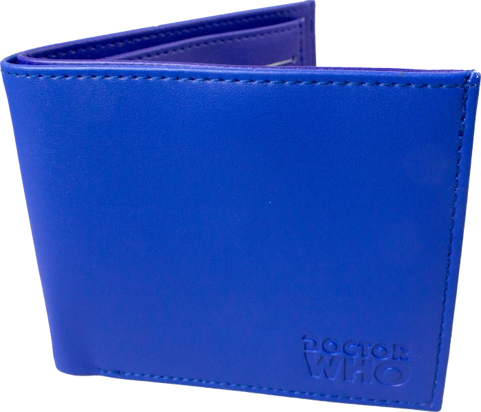 Classical style folding wallet, in blue featuring the title of the BBC’s best known sci-fi embossed on the outside. Featuring an internal windowed pocket to store any form of ID.