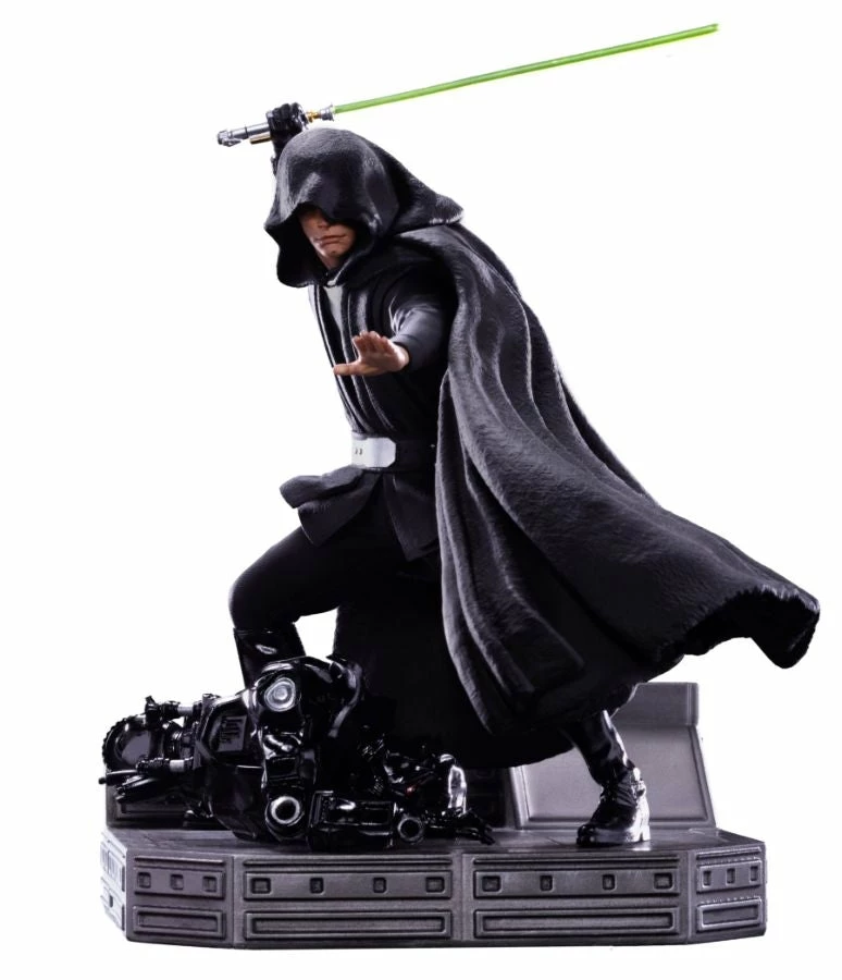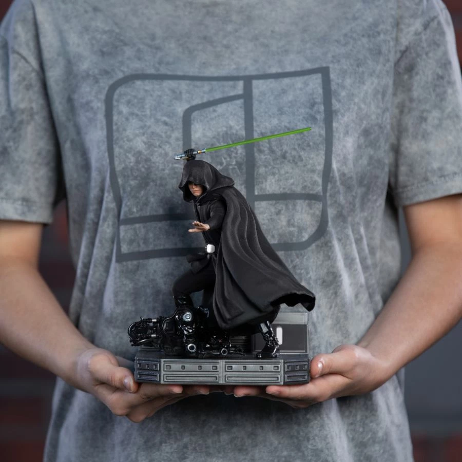 Aboard Imperial Officer Moff Gideon’s light cruiser spacecraft, the enigmatic figure of a Jedi Master, wearing a black hooded cloak, uses all his skill and connection to the power of Force with his left hand. In his right hand, with a glove, he masterfully wields a green lightsaber. At his feet lies the metallic remains of a deadly Dark Trooper droid, part of a security squad that tries in vain to stop the relentless warrior. Inspired by one of the most memorable scenes from the last episode of season 2 of the series The Mandalorian, Iron Studios presents the statue”Luke Skywalker BDS Combat Version – Art Scale 1/0 – The Mandalorian”, featuring the greatest hero of the Star Wars saga in his unexpected appearance on the Disney+ streaming series. When Grogu (Baby Yoda) was in a trance-like state in the so-called Seer Stone, in the ancient ruins of a temple on the planet Tython, the small child sent a signal apparently received by Luke Skywalker, who promptly came to his rescue at a decisive moment. Using his skills as a Jedi Master, Luke faced and defeated, an entire platoon of Dark Trooper droids in a shocking scene that thrilled fans around the world. In the end, Luke becomes the child’s new protector, given to him by his previous guardian, Din Djarin (Mando). This iconic combat scene is now immortalized by Iron Studios, in a piece that faithfully replicates the smallest details, such as tissue and metallic textures and the movement in the pose of the Jedi master. The statue is already available for Pre-Order. Check out the “Dark Trooper BDS Art Scale 1/10 – The Mandalorian” statue that can compose a diorama along with Luke, and the entire line of future Iron Studios releases derived from The Mandalorian series, featuring the most important protagonists in statues in Art Scale 1/10 and Legacy Replica 1/4. Stay tuned for all the news on our social media.