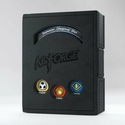 This exclusive premium deck box is specially designed for the needs of a KeyForge player. Without needing to open the box, you can check your unique deck at first sight through the cutouts that display the deck‘s name and houses. Shaped like a book, this appealing, compact box keeps your valuable deck securely protected. Features: Durable and rigid box designed like a small book Optimized for double-sleeved cards* Holds full KeyForge Deck, even if the cards are double-sleeved Unique deck name and houses visible at first sight without needing to open the box Easy reading of the deck list when box is opened Easy removal of the deck Very strong magnet for a precise and secure closure Premium outer and inner materials (Nexofyber surface microfiber inner lining)