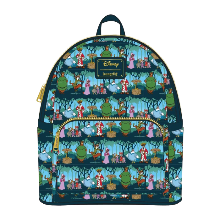 Robin Hood and Little John walkin’ through the forest- oh and there’s Maid Marian, Lady Kluck, Prince John, Sir Hiss, and the children too. There’s quite a commotion in Sherwood Forest since this Loungefly Disney Robin Hood Sherwood Mini Backpack has appeared. This backpack is here to steal hearts while you adventure through various lands. The Disney Robin Hood Sherwood Mini Backpack is made of vegan leather (polyurethane). Bag has adjustable shoulder straps, sturdy metal hardware, and features printed details. Take note of the coordinating pattern of the inside lining fabric. Please note: Patterns will vary with all-over-print styles. Not every piece will look identical nor will every piece be an exact match as to what is pictured online. This bag is an officially licensed Disney product. Bag Dimensions: 9″W x 10.5″H x 4.5″D (Please note: width is measured across the bottom of the bag.)