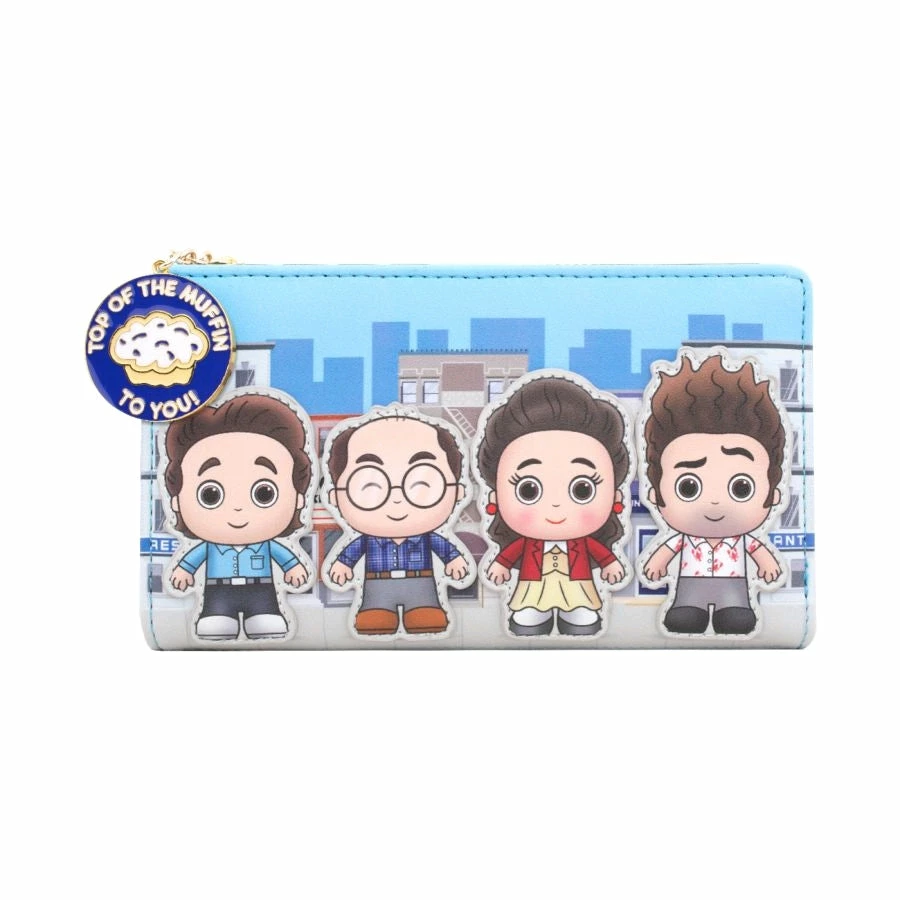 Accessorize with the new Funko x Loungefly Seinfeld collection featuring the Seinfeld Flap Wallet. This wallet is a fun accessory for young and young-at-heart fans alike and is sure to get compliments from fellow fans of the show. The Seinfeld Flap Wallet is made of vegan leather (polyurethane). Wallet snaps closed, has sturdy metal hardware, a zipper pocket and features: enamel zipper charm and printed details. Take note of the coordinating design of the inside lining fabric. This wallet is an officially licensed Seinfeld product. Wallet Dimensions: 6.5″ W x 4″ H (Please note: width is measured across the bottom of the wallet.)