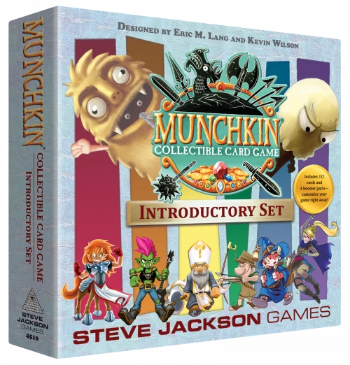 Bluff, cheat, and bludgeon to your heart’s content! The Munchkin Collectible Card Game Introductory Set has everything two players need to play as any of the six Heroes in this game, and it’s a great starting point for players of all levels. Pick the Heroes you want to pit against each other, create your decks, and customize them using the included randomized boosters – all right out of the box!