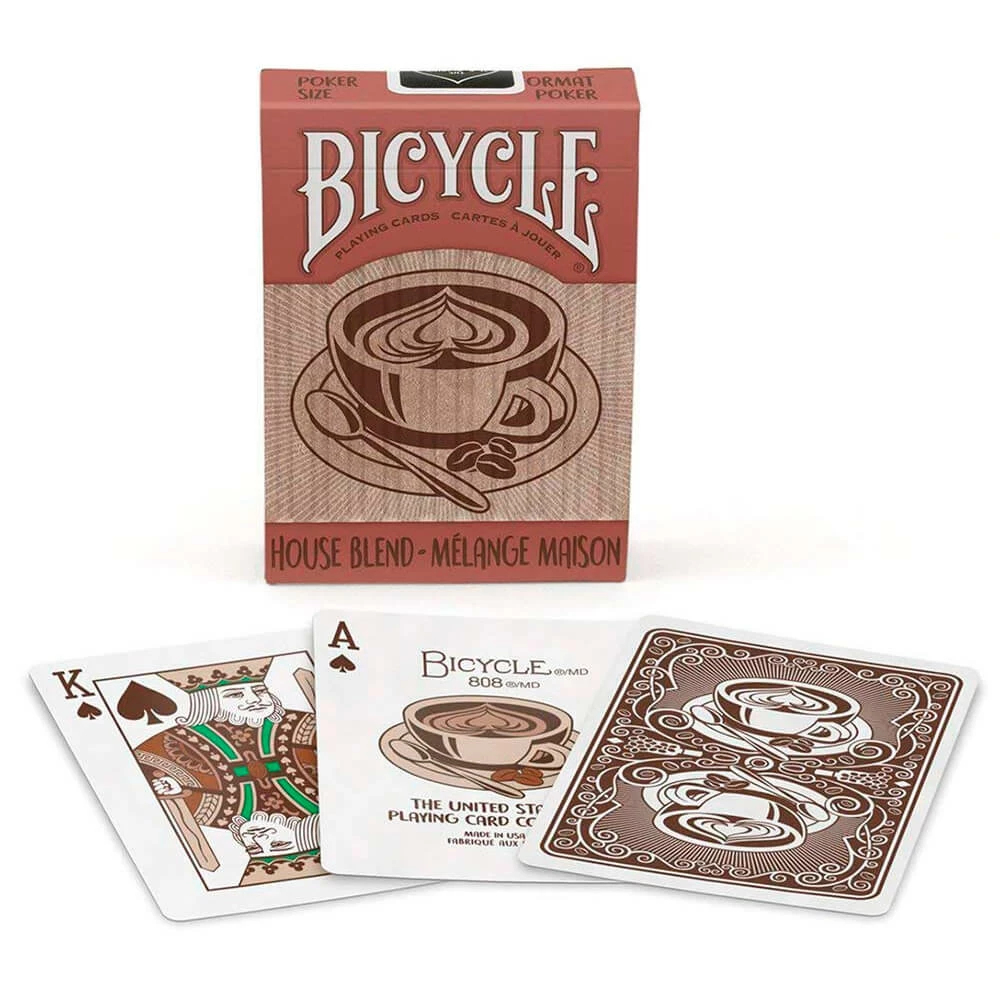 Celebrate America’s passionate coffee Obsession with Bicycle playing cards house blend, a deck that brings the coffeehouse experience home to you. Each of the cards has been fresh brewed in our factory to infuse your card playing experience with the feel of your local coffee house! printed on premium Bicycle brand cardstock.