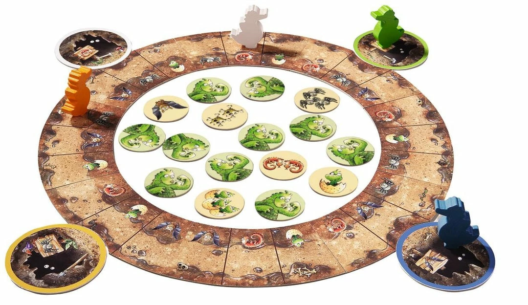 Dragons like to play with fire! Boisterously they dance and jump around the crater of the fire spitting volcano. They are even brave enough to organize a fiery dragon competition. And off they zip as everyone wants to be the quickest. Lets see for which dragon things will become too hot! Whichever brave dragon has a good memory, goes round the volcano and is able to reach their cave first, is the winner. The game ends as soon as a dragon has gone around the volcano and reaches their cave. They win this fiery competition at the edge of the bubbling volcano.