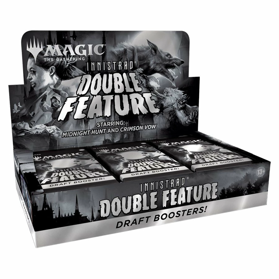 We told you it was coming soon and now it’s official! The curtain will rise on Innistrad: Double Feature on January 28, 2022. This limited Draft Booster set is exclusive to WPN stores and combines the spooky goodness of Innistrad: Midnight Hunt and Innistrad: Crimson Vow into one awesome black and white showcase treatment, reminiscent of classic beloved horror films.