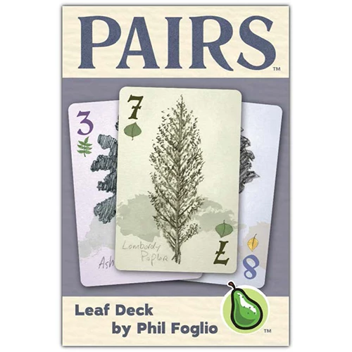 New, limited-edition Pairs deck. Features 10 tree and leaf types sketched by Phil Foglio, award-winning artist and co-creator of webcomic Girl Genius. $10 impulse buy with endless replayability. Includes the basic Pairs rules as well as the game variant Hawthorn. More than 30 more free variants are available at PlayPairs.com/Pairs. Printed in the USA