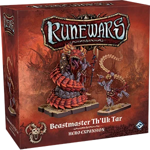 Bend the creatures of the Ru steppes to your will with the Beastmaster Th’Uk Tar Hero Expansion for Runewars Miniatures Game! When the Uthuk march into battle, their ranks are filled with not only tribesmen of the Ru Steppes, but also deadly beasts that thrive in the broken lands. Only Beastmaster Th’Uk Tar can bend them to his will, using his spine whips to beat the creatures into submission. Marked by the Ynfernael with hooked feet and razor fangs, this Uthuk tribesman was destined for glory from infancy. Now a chieftain, he uses his unholy link to lead his pack to war, and all shall either submit or perish! The Beastmaster Th’Uk Tar Hero Expansion includes two unpainted figures, one command tool, a new objective and deployment card, thirteen upgrade cards, and a collection of tokens to further customize your demonic army. This is not a standalone product. It requires a copy of the Runewars Miniatures Game Core Set and the Uthuk Y’llan Army Expansion to play.