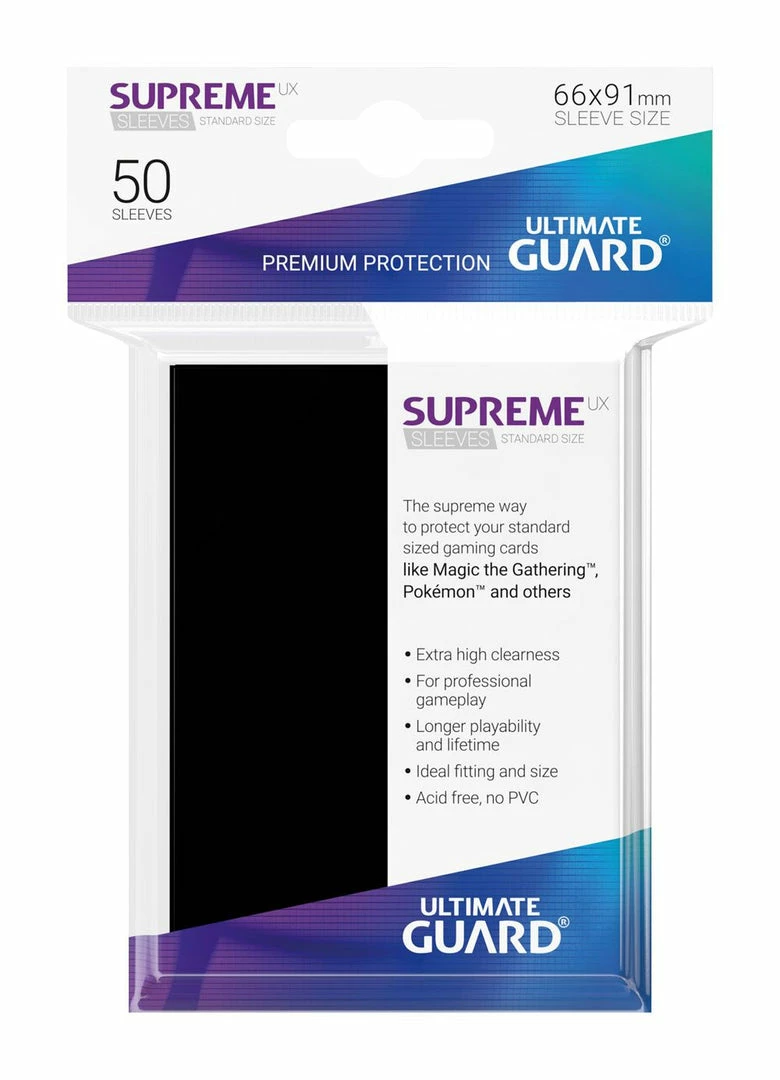This pack contains 50 high quality card sleeves for all standard sized gaming cards, like Magic the Gatheringâ„¢, Pokemonâ„¢ and others. – New formula: Extra seal strength – Extra high clearness – Acid free, no PVC – For professional gameplay – Ideal fitting and size for a perfect hold – Prevents bent corners and scratches – Prolongs the playability and lifetime of cards – Size of sleeves: 66 x 91 mm