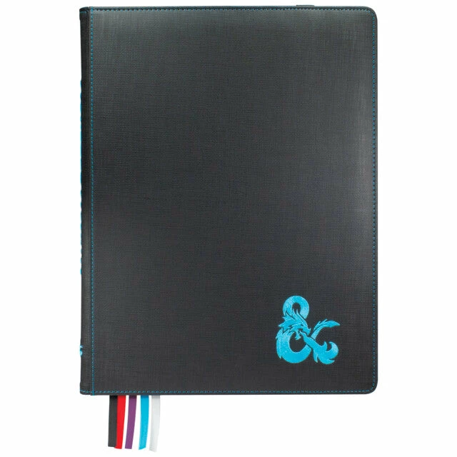 Cast a ward of protection on your treasured D&D source books with the Premium Book Cover for Dungeons & Dragons. The textured leatherette cover features a rigid layer of protection for both the front and back of the book, while remaining flexible at the binding for ease of use. Simply slip the back cover into the back inner pocket and use the front elastic strap to either hold the front cover open, or secure the book closed by pulling it over the back cover. Easily reference important pages marked by 5 attached and color-coded ribbons (black, red, blue, purple, & white). Premium Book Covers pair beautifully with other Ultra PRO premium accessories for Dungeons & Dragons. Each book cover features embroidered labeling on the binding as well as the classic D&D ampersand on the front cover, each complimented by color-matched stitching. Sized for both vintage and current size books, this is the ultimate UPgrade for any party member, DM, or D&D enthusiast