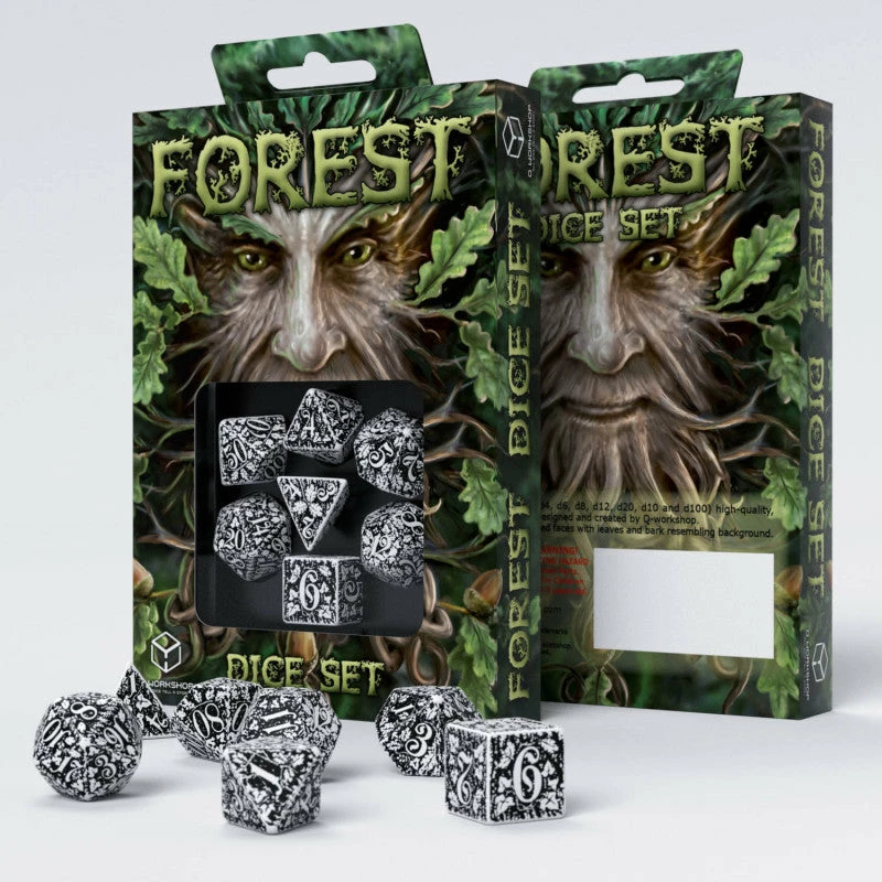 Ozzie Collectables Q Workshop Forest 3D White & Black Dice Set 7