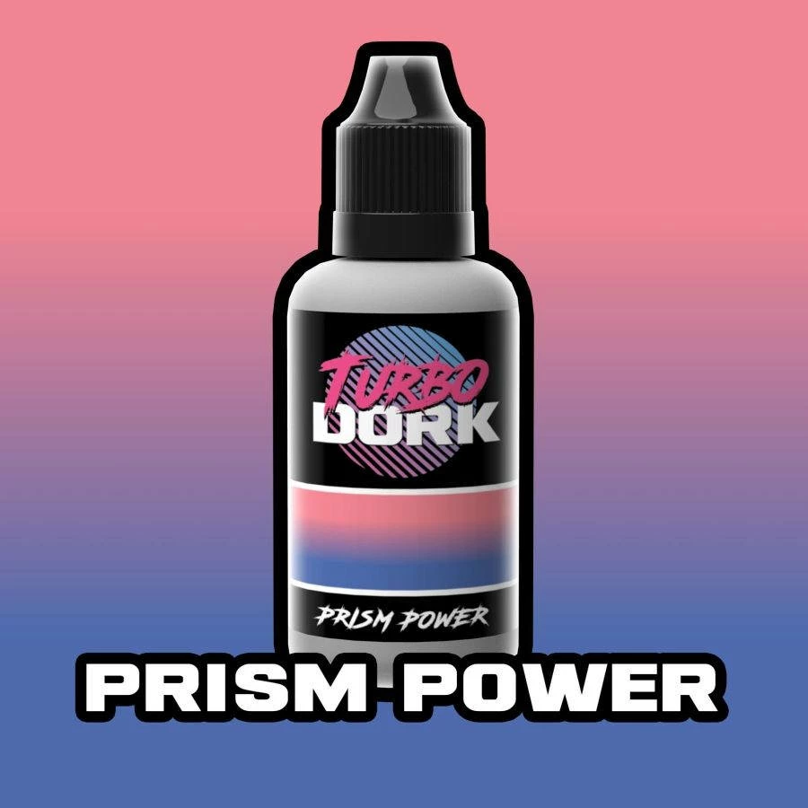 Have you heard about zenithal shifts? No? Because we just invented them! Zenithal shifts are Turboshift colors that appear different when you use them over white or black basecoats. Apply it over white, get one color, apply it over black, get another different complementary color. If you use zenithal undercoats, i.e. fading from black on the undersides to white on the top parts of a model, you will get a beautiful colorful transition in just one paint! Or try dry brushing white over black, before applying our zenithal shifts, to have those white edges colorfully stand out from the now differently colored black recesses. Get Shifty features two of these amazing new colors: Prism Power, and Twin Sons.