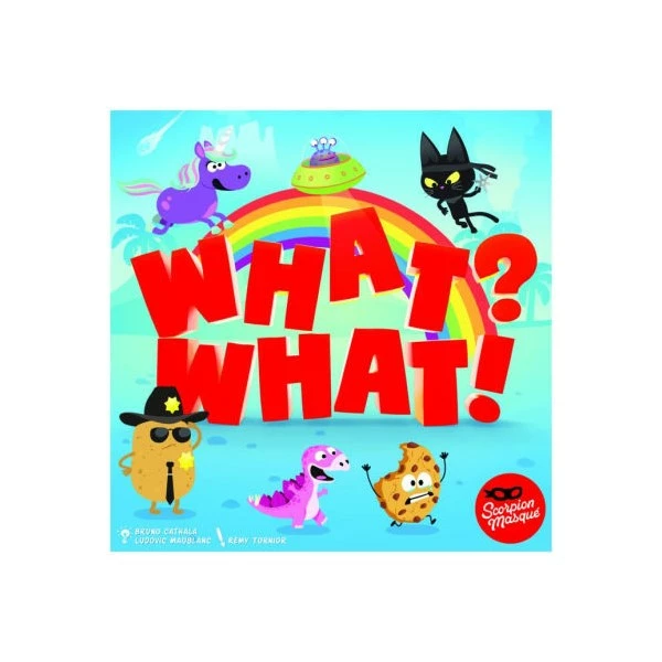 What? What! was inspired by its big brother, Think again!. One player asks very simple questions about zany pictures to all the other players. To win a card, you must be the first to give an appropriate answer. But be careful! Sometimes you need to give the right answer… and sometimes the wrong one! The die will decide this for each question. It’s a lot more difficult and certainly a lot funnier than you can imagine. Content: 53 Questions cards 3 Rules cards 1 memory aid 1 die