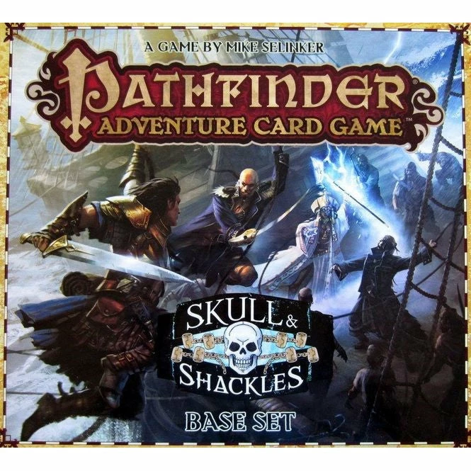 Launch a campaign to control the Shackles with the Pathfinder Adventure Card Game: Skull & Shackles Base Set. This complete cooperative strategy card game pits 1 to 4 heroes against the traps, monsters, deadly magic, and despicable foes of the Pathfinder Roleplaying Game’s award-winning Skull & Shackles Adventure Path. Choose your character’s class; build a deck of allies, equipment, and magic; and explore lethal locations as you journey through multiple scenarios in an exciting fantasy adventure. Characters grow stronger after each game, adding unique gear and awesome magic to their decks, and gaining incredible powers, all of which they’ll need to challenge greater threats in a complete Pathfinder Adventure Card Game Adventure Path.