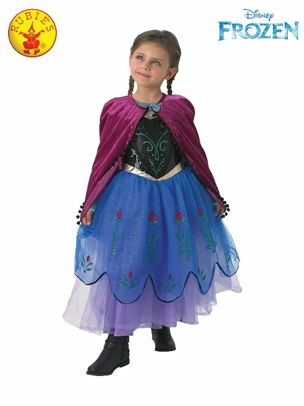 - Luxurious velour cape with pom-pom trim at the hem and heart shaped mock clasps hide the velcro fasten