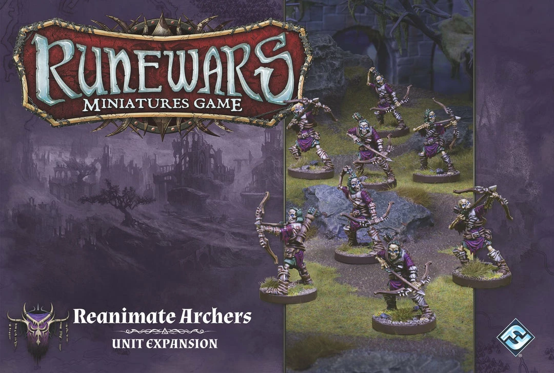 Fire poisoned arrows down on your enemies with the eight new Reanimate Archer figures included in the Reanimate Archers Unit Expansion! These eight figures give you the option to field another two-tray unit or increase the size of a larger unit—perhaps fielding a block of archers that will rain death on your foes. Like the Oathsworn Cavalry, these figures are identical to the figures included in the Runewars Core Set, and this expansion gives you an easy way to raise more undead to fight for Waiqar the Undying, while opening dark new paths with five new upgrade cards.
