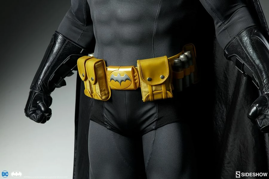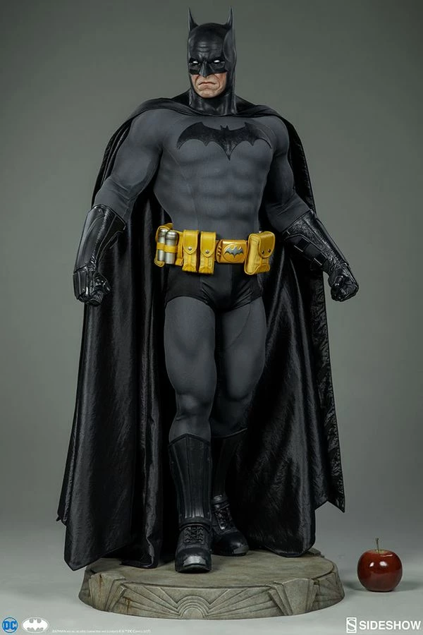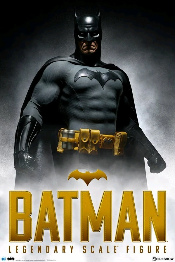 I wear a mask. And that mask, it’s not to hide who I am, but to create what I am. Sideshow is proud to introduce Gotham’s own caped crusader Batman as the next addition to Sideshow’s line of Legendary Scale Figures. As a part of our Legendary Scale’ lineup, this half-scale depiction of Batman stands 43″ tall and is 22″ wide at the base. Based on his comic book appearance, the Batman Legendary Scale Figure has a grey and black costume, a yellow utility belt, and a fabric cape. The figure is crafted out of polyresin, fiberglass, and fabric. Like a bat-signal in the sky, the Batman Legendary Scale Figure is sure to stand out as the centerpiece in any DC fan’s collection.