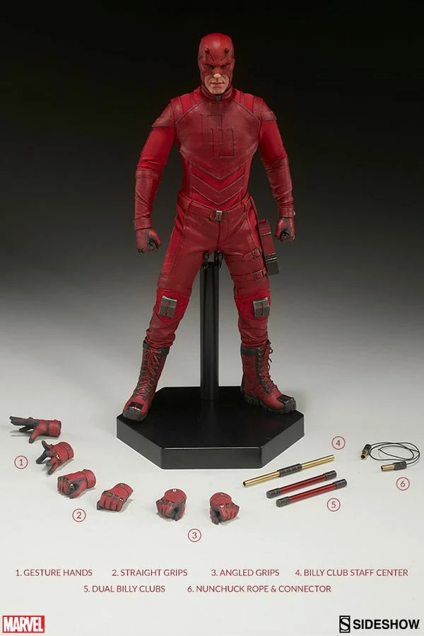 Blinded by a mysterious radioactive substance, Matt Murdock discovered that his remaining senses were heightened to an extraordinary degree. His newfound “radar sense” made it possible for him to sense the objects around him, hear a heartbeat, read printed material by running his fingers over the ink on a page, and even feel microscopic changes in air pressure to dodge incoming attacks! Tirelessly honing his physical and mental skills, Murdock becomes an inner-city lawyer by day and a fearless vigilante by night, tackling injustice on both sides of the law! Sixth Scale Figure combines several of his most iconic “looks” to create an original design that pays homage to the character we know and love from the comic books. This all-new Daredevil suit has been painstakingly designed and expertly tailored to feature many subtle “Easter eggs” and symbolic clues that give visual nods to Matt Murdock �s background, beliefs, and ideals. With numerous points of articulation and four sets of sculpted hands, this figure offers a multitude of options for posing and display.