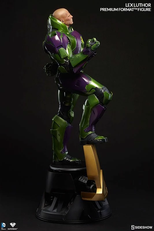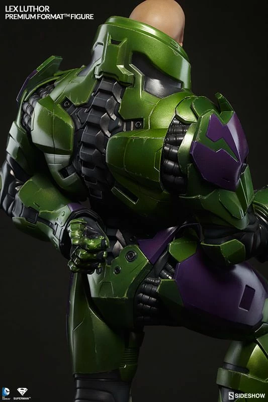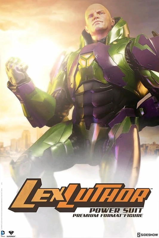 “Nothing can stop me now.” He’s one of the most dangerous men on the planet – and Superman’s greatest arch-nemesis. Sideshow is proud to present the Lex Luthor in Power Suit Premium Format Figure. Finally, the Man of Steel has met his match! Lex Luthor glowers down at all those he deems inferior, from a commanding position at the pinnacle of LexCorp tower and human achievement. Suiting up in his massive metallic green and purple battle armor, finely crafted with light-up features, the brilliant billionaire industrialist has leveled the playing field, ready to go toe-to-toe with the strange visitor from Krypton. Fueled by obsession and personal vendetta, one thing’s for sure’ whether he’s trying to protect Earth or dominate it, Lex Luthor will settle for nothing short of total perfection.