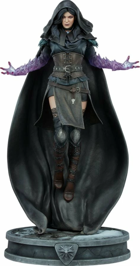 “I may be inhumanly beautiful, but I dont have superhuman senses.” Sideshow presents the Yennefer Statue, bringing magic to the world of The Witcher collectibles. Inspired by her appearance in the hit fantasy video game The Witcher 3: Wild Hunt, the Yennefer Statue measures 19.5″ tall and 10.79″ wide as the powerful sorceress channels a spell against her foes. Mystical purple energy winds up her arms while she hovers above a stone-like base touched by the impending White Frost, displaying her immense strength in the face of danger. The polystone Yennefer Statue is fully sculpted and painted to capture the beautiful details of her dark mage costume, down to the appearance of stitched leather on her waist cincher. She wears a dark blue blouse beneath her brown bodice, black belts, and gray skirts. Her heeled boots are studded and painted to look like cobbled leather, with armored knees and delicate lace details at her thighs. Yenna’s shoulders also have sculpted raven feathers, painted to capture the shimmer of dark plumage. Her immense black cloak shadows her beautiful portrait and adds an air of mystery to the impressive mage of Vengerberg as she aids Geralt of Rivia in his travels. Capture the magic of The Witcher 3: Wild Hunt and bring home the Yennefer Statue today!