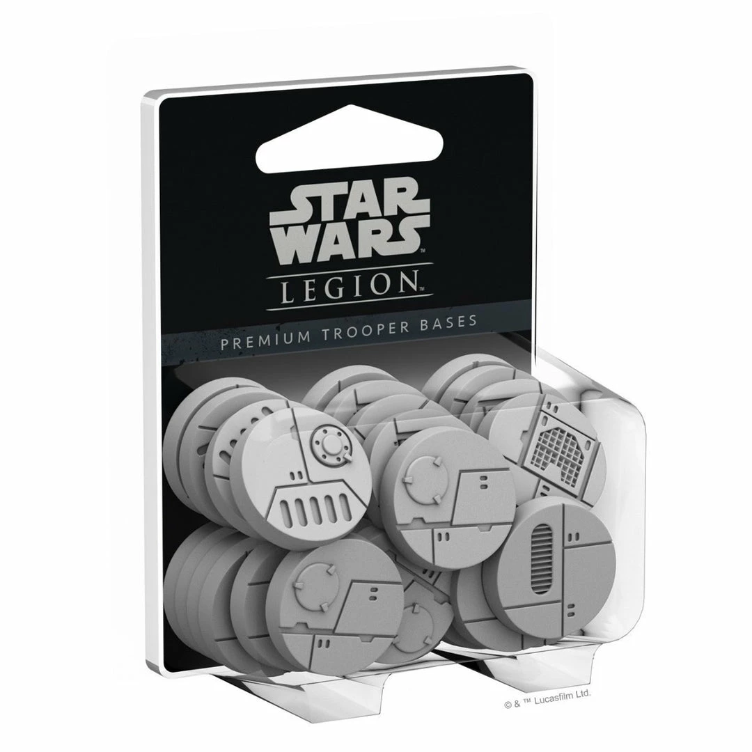 Enhance the look of your Star Wars™: Legion soldiers by placing them on premium plastic bases! The Premium Trooper Bases pack contains 32 premium 27-mm round bases that can be used to upgrade trooper units such as Stormtroopers or Rebel Troopers. The bases contained in the pack include four copies of eight unique sculpts, carefully designed to look like environments at home in the Star Wars galaxy, while their neutral gray tone of plastic gives you the opportunity to paint and customize your bases to fit your army’s style.