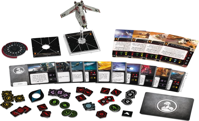 The LAAT/i Gunship Expansion Pack contains everything you need to add one of these sturdy ships to your Galactic Republic squadrons, including a finely detailed LAAT/i Gunship miniature, four ship cards, 14 upgrade cards, and two quick build cards to get your ship directly into the fight.