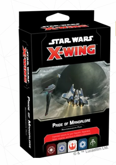 The Pride of Mandalore Reinforcements Pack includes new ship and upgrade cards for Star Wars: X- Wing, allowing players to pilot their existing ships with new characters seen in The Mandalorian, Star Wars: The Clone Wars and Star Wars: Rebels. In addition to new pilots and upgrade cards useable by five factions; new tokens and obstacles are also included. Finally, the reinforcements pack also contains dials and ship tokens to convert the Fang Fighter over to the Rebel Alliance!