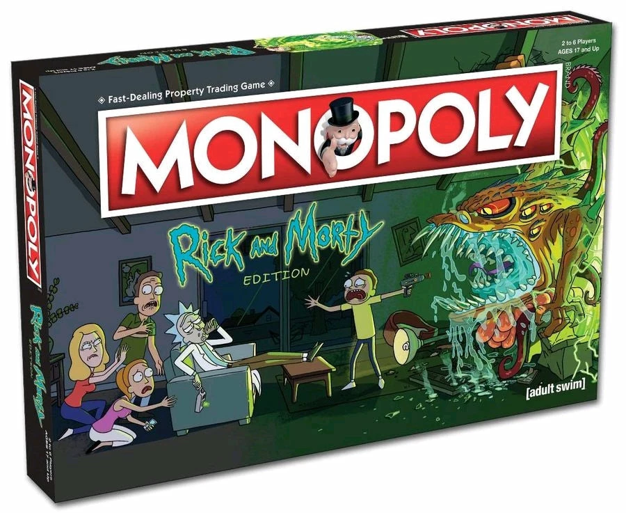 Wubalubadubdub! Join Rick and Morty and the Smiths as you gallivant your way to victory by buying, selling and trading locations from the Multiverse including the Cromulon Dimension, Gazorpazorp and Planet Squanch (not to mention a few places from your own Earth realm). Featuring 6 collectible tokens, Flooble Cranks, Gooble Boxes, and more! It’s MONOPOLY with a Rick and Morty twist.