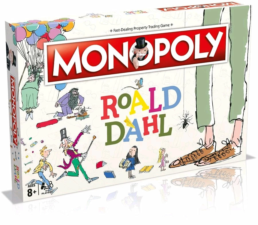 Meet your favourite characters as you travel through Giant Country, and inside the giant peach in Roald Dahl Monopoly! Play as one of six brand new character tokens – a pile of Matilda’s books, James’s giant peach, one of Mr Fox’s chickens, a bubbling pan of George’s marvellous medicine, a mouse from The Witches and one of Willy Wonka’s sweets. Will you join Centipede and Miss Spider, from James and the Giant Peach or end up with Mr and Mrs Twit? Will you secure Crunchem Hall, home to the terrible Miss Trunchbull, or pay Mr Wormwood for unnecessary car repairs? Grab your Golden Ticket and get ready for this celebration of Roald Dahl’s phi-whizzing imagination!